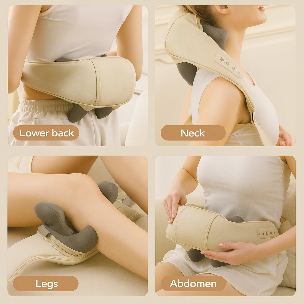 Ergonomically crafted to fit your neck, shoulders, back, and more, Essentivoo™ Kneading Massager gently unlocks daily comfort, beauty, and effortless relaxation—whether at home or on-the-go